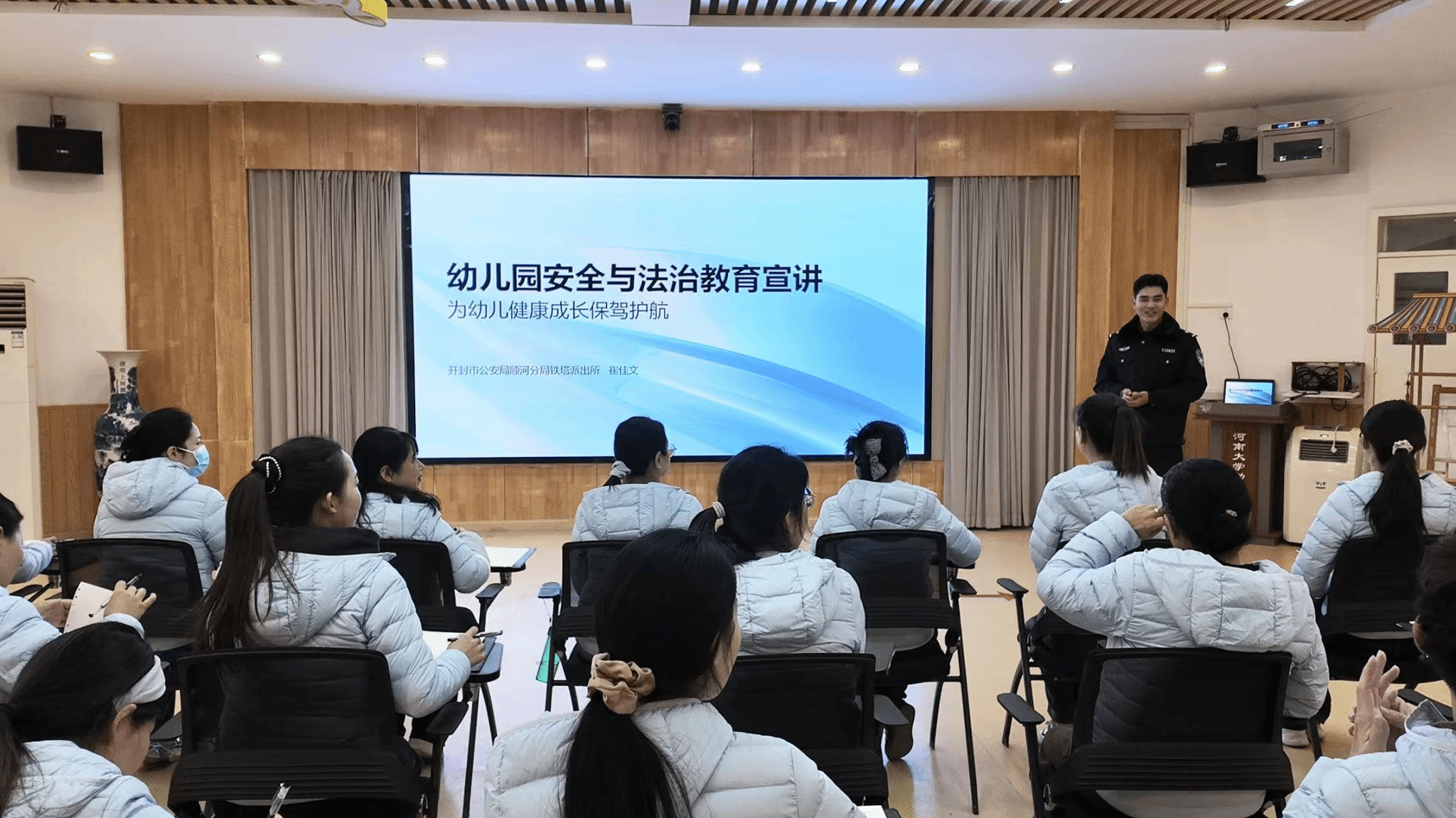 为进一步筑牢幼儿安全防护网,提升教职工的安全意识与法治素养,12月9 日,河南大学幼儿园特邀开封市公安局顺河分局铁塔派出所崔佳文警官入园,开展安全与法治教育专题宣讲,为园所管理人员、一线教师、保健人员、保安师傅等送上了一堂生动实用的安全法治课。