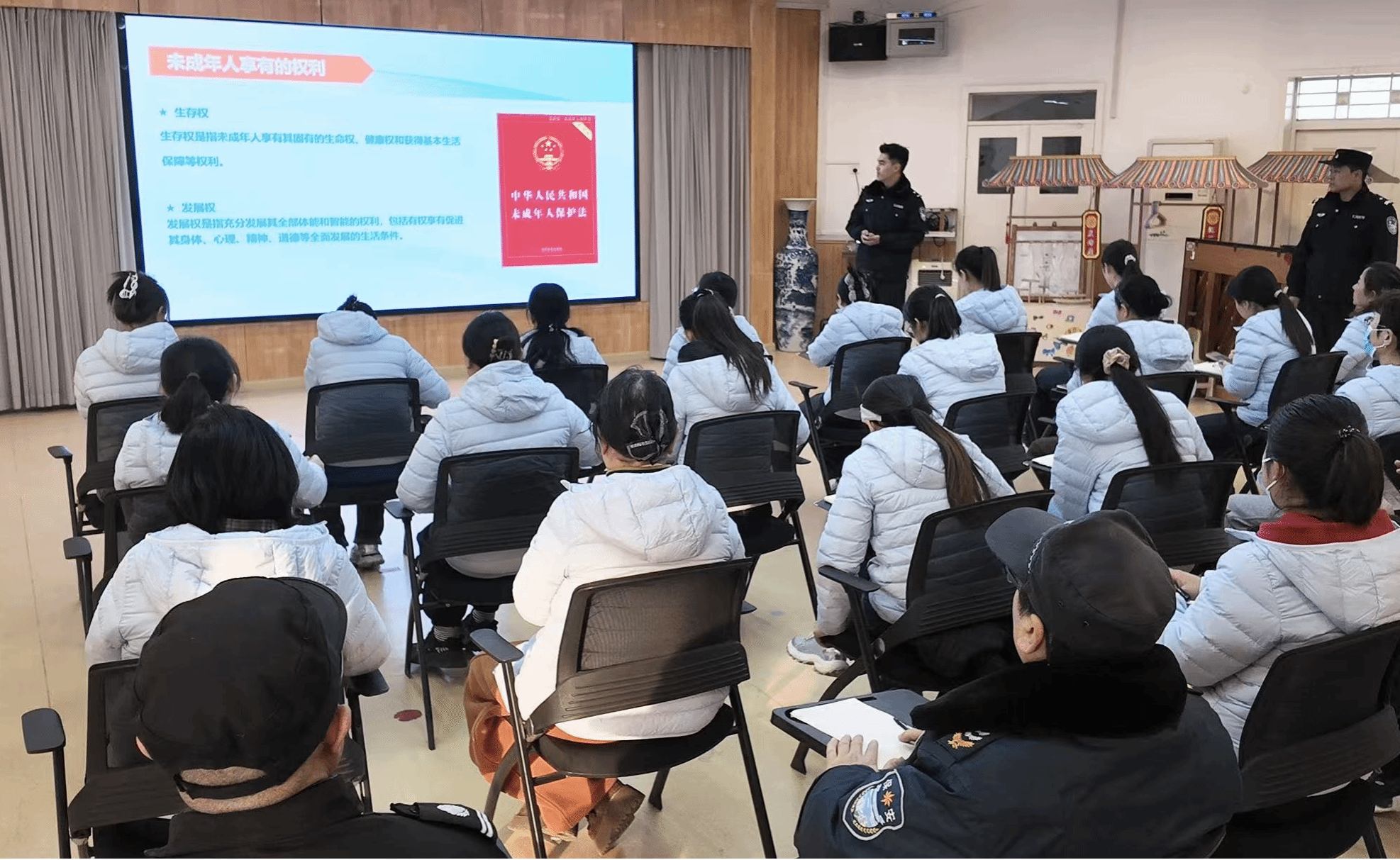 宣讲伊始,崔警官围绕未成年人核心权利展开解读,明确未成年人享有生存权、发展权、受保护权、参与权、受教育权五项基本权利,并结合《中华人民共和国未成年人保护法》相关条款,用通俗的语言阐释各项权利的法律边界与保障措施,帮助在场教职工建立系统的法治认知。