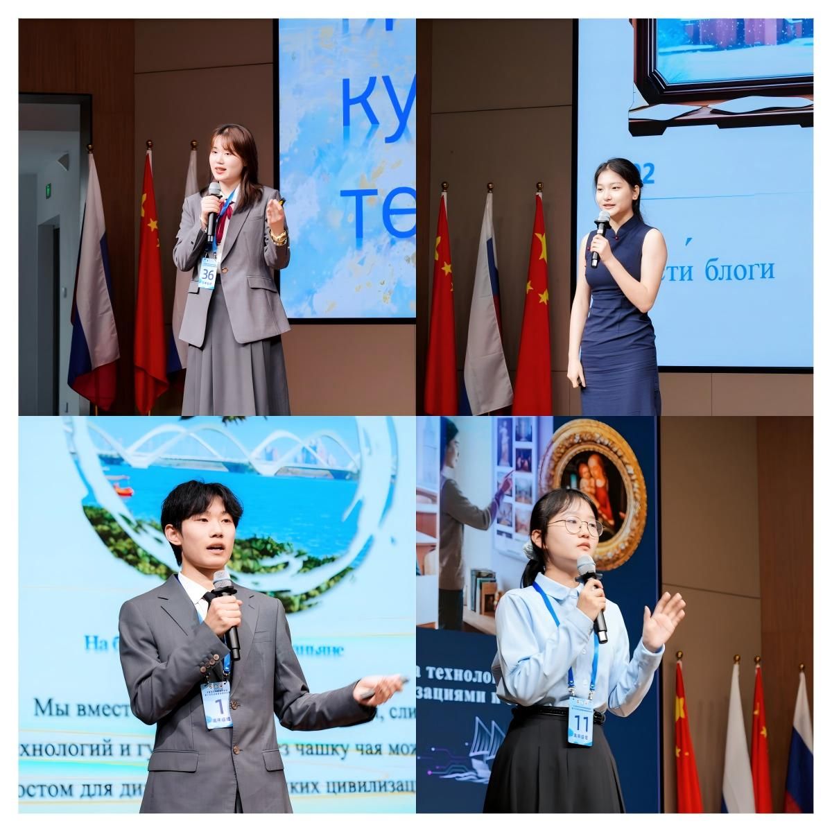 同期举办的第四届俄语演讲比赛以“以人文之心,驭科技之翼:中俄青年共绘新时代”为主题,比赛设高年级组和低年级组,来自全国各地中俄合作办学高校近百名学生代表参加比赛,充分展现了中俄合作办学学子的理想信念与青春风采。经过激烈角逐,我校参赛学生凭借扎实的语言基础、清晰的逻辑表达和昂扬的精神面貌脱颖而出,2023级学生任营营、冯亦安分别荣获高年级组二等奖;2024级王庆鑫、2025级张一帆分别荣获得低年级组二等奖、三等奖,生动体现了欧亚国际学院俄语教学的扎实成果与学生的综合素养。