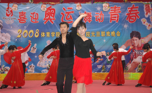 12月23日晚,国际教育学院与体育学院在体育馆举行“喜迎奥运 舞动青春”元旦晚会。校领导宋纯鹏、王凌、孟庆琦等,以及学校有关职能部门、国际教育学院、体育学院的负责人与会。国际教育学院、体育学院以及部分其它学院的近3000名学生参加了晚会。