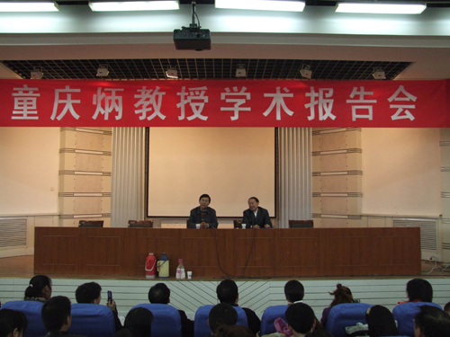 报告最后,师生们提出了一些文艺理论方面的问题,童教授均耐心详细地一一作了回答。童庆炳现为北师大中文系教授、博士生导师,作家,教育部人文社科基地北师大文艺学中心主任,中国中外文艺理论学会副会长,中国作家协会理论委员会委员。著有长篇小说《淡紫色的霞光》,随笔散文集《苦日子甜日子》、《文学概论》等学术专著。