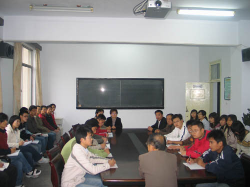 随后,哲学与公共管理学院原院长王德木教授和其他院领导与同学们一起召开了师生座谈会。王德木教授在座谈会中用精彩的语言、生动的事例解析了科学发展观的科学内涵,并对十七大的胜利召开对中国的改革和发展前景和影响进行了展望。