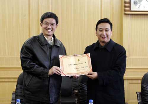 1月17日下午,李晓铭教授签约我校黄河学者仪式在新行政楼三楼会议室隆重举行,校领导赵国祥、梁晓夏等,以及北京师范大学方晓义教授出席聘任仪式。