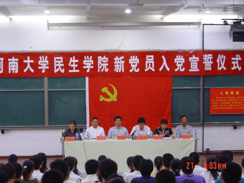 2006年6月21日下午,民生学院新党员入党宣誓仪式在金明校区14组团309教室隆重举行。