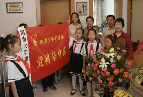 六一节前夕,河南大学附属小学成立了党鸿辛中队,少先队员通过学习党鸿辛院士事迹、召开主题中队会等一系列活动,了解了党院士的先进事迹。这些活动的开展使队员们受益匪浅,感受颇深,纷纷表示一定要努力学习,从小立志,要像党爷爷那样,做一个对人民、对社会有用的人,为祖国的强盛做出贡献!