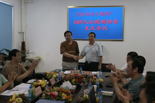 2005年6月30日下午,河南省食品药品监督管理局GMP认证检查组正式宣布:河大制药厂通过国家GMP认证。这一认证通过标志着河大制药厂由此跨上一个新的台阶,进入了国内、国外医药市场的竞争行列。