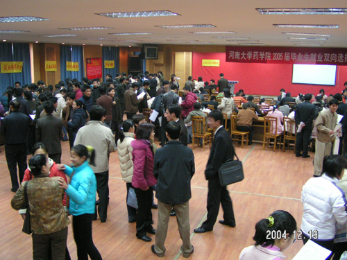 12月19日上午,开封市航天大酒店会议中心内喜气洋洋,热闹非凡,药学院2005届毕业生就业双向选择会在此隆重举行。