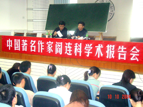阎连科先生深入分析了现当代文学的创作形势,他以一个作家的视角,从审视民族文化的高度出发,指出底层人民的生活对整个民族文学的重要性,阐述了底层人民是一个特殊而重要的群体,并对其进行了界定;从文学与底层人民生活严重割裂的现状,提出了作为作家和文学爱好者,要关注社会底层人民生活和民族命运的要求。阎连科先生通过一个个具体、生动的实例阐述了底层人民的生活对文学创作的重要性,并提出了如何将底层生活与艺术探索相结合的问题。阎连科先生还从历史和现实的角度进行阐述,从鲁迅、柔石谈到萧红、沈从文;从俄国文学、拉美文学谈到诺贝尔文学奖,他渊博的学识、幽默风趣的语言赢得了阵阵掌声。报告会上,他还对同学们的提问一一作了解答。