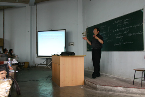 章博士的这次报告会以“西方学术研究实践”为题,在两个多小时的演讲中,他引用澳大利亚英语学者从事学术研究的具体实例,系统介绍西方学术研究规范,展示当今世界从事英语学术研究的特点和规律,引起了在场师生的浓厚兴趣,使大家受益匪浅。