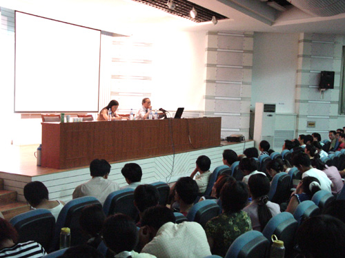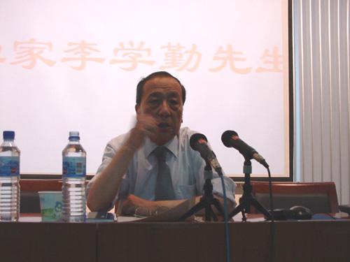 在讲“考古学的新发现”之前,李先生高度赞扬了河南大学研究古代文明的优秀传统和我校师生的优良学风,他说,早在50年前接触夏商周文化时,他就已知道河大,现代意义上的中国考古学的发端与河南大学有密切的关系。始于1928年的安阳殷墟发掘,河南大学的尹达、石璋如参与了发掘,两人后来都成为中国考古界的泰斗。李先生对“重大考古发现”作了通俗而准确的阐释,他认为“重大考古发现”可以改变人们对一个历史时期、一种文化、一个地区或一个民族历史的认识,这才叫“重大发现”,而不是出土了很多“宝贝”。李先生重点介绍了2003年以来的几次重大考古发现,他说,2003年元月19日陕西省眉县杨家村西周青铜器窖藏最大的意义是第一次用考古材料证明了西周王室世系,与《史记》所记大致相同;2003年3月中旬济南大辛庄发现甲骨卜辞,说明了殷墟以外的方国也有卜辞;2004年初陕西岐山周公庙遗址,五爪梁发现大规模西周墓葬群,有好几座有四个大墓道,又发现几十片甲骨,出现“周公”字样,据考证应是周公旦,为寻找西周王陵提供了重要线索。