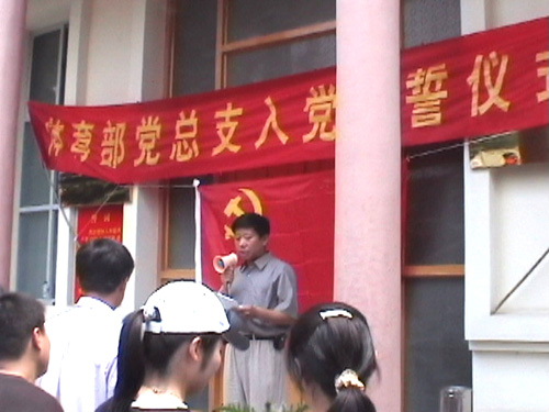 体育部党总支书记郭甲社同志代表部党总支和全体党员特向这天在党旗下庄严宣誓的五位新党员表示热烈的祝贺。他说,举行入党宣誓,一方面是党组织发展党员工作的必经程序,另一方面使每一位预备党员表示对党的坚定信念和为党的事业奋斗终身的决心,以提高对党的事业的责任感和自觉性,以实际行动终身牢记和履行自己的誓言。