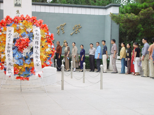 下午3时,他们来到焦裕禄陵园,先后参观了焦裕禄陵墓、焦裕禄纪念馆,观看了纪录片。在焦裕禄墓前,全院教工怀着崇敬的心情敬献了花圈;在纪念馆,通过图片和讲解,焦裕禄的感人事迹使每一个人无不为之感动,党的好干部、人民的好公仆的光辉形象出现在每一个人的脑海中;《今日兰考》纪录片讲述了在焦裕禄精神的鼓舞下,乘着改革开放的东风,经过兰考人民的艰苦努力,兰考发生了翻天覆地的变化,如今不仅改变了过去贫穷落后的面貌,而且形成了集农工贸为一体、协调发展的经济新格局,在国内外都有一定影响。随后,还参观了焦裕禄精神的象征--焦桐、毛主席视察杨庄小学纪念亭和去年黄河决口的东坝头。院党总支要求学习焦裕禄精神,要结合学院和学校实际,求真务实,开拓创新,凝聚力量,为再铸河大辉煌贡献力量。