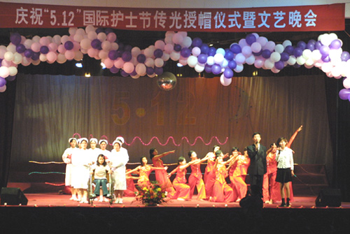 授帽传光仪式之后,文艺晚会开始,整台晚会节目精彩纷呈。话剧《爱在继续》歌颂了护理人员的纯洁心灵和无私奉献精神,把爱撒满人间;一附院老师们的《动感健身操》展示了对健康与美的追求;护理学院的老师们也精心排练了京剧表演《苏三起解》,赢得了阵阵掌声;光临大会的学生处赵志华副处长的一曲《四川民歌》使晚会达到了高潮……护理学院的师生们度过了一个愉快而又难忘的夜晚。